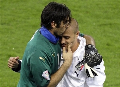 While Italy breathed a sigh of relief at surviving what would have been an inglorious early departure from Group C, the game became a nightmare for France. Eager to keep their chances of survival alive and avenge a penalty shootout defeat by Italy in the 2006 World Cup final, nothing went right for them and they finished bottom of the group. They not only lost inspirational playmaker Franck Ribery to a knee injury after only nine minutes but also had defender Eric Abidal sent off for hauling down Luca Toni in the area. Andrea Pirlo converted the resulting penalty in the 25th minute and a goal by Daniele De Rossi after 62 minutes gave Italy their first win over France in normal time without the need of extra time or penalties since the 1978 World Cup finals. The victory, coupled with Romania's 2-0 defeat by Netherlands in Berne, secured Italy's place in the last eight. The only setback on the night was that midfielders Pirlo and Gennaro Gattuso were both booked and will miss the game against Spain in Vienna on Sunday. Italy coach Roberto Donadoni said: "It was a good performance. Perhaps we were playing better 11 against 11. "After that, a bit of fear and nerves came in but today it was a great response from all the lads." France coach Raymond Domenech said: "I am proud of my players. But the circumstances made it tough. Playing with 10 men for an hour, Franck being injured after 10 minutes, just one substitution possible after half an hour, that's tough." Striker Thierry Henry was on the same wavelength, saying: "Nothing went our way. Franck gets injured, we concede the goal and are shown a red card. Everything went against us. We tried to fight until the end but luck was just not on our side." Italy made the breakthrough when Pirlo lashed home his penalty after Abidal was red carded for bringing down Toni as he prepared to shoot. The gap left by Ribery's absence allowed Italy to largely dominate in midfield and between them Pirlo, De Rossi, Gattuso and Antonio Cassano created three good chances for Toni to score before halftime. Defender Fabio Grosso also went close when he thumped in a 43rd minute free kick which France keeper Gregory Coupet touched onto his right-hand post. De Rossi made it 2-0 when he smashed in a shot following a rehearsed free-kick routine, with his drive taking a deflection off Henry to leave Coupet wrong-footed.