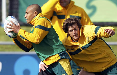 Novak Djokovic of Serbia kisses the court surface as he celebrates after defeating Rafael Nadal of Spain in the men's final of the US Open tennis tournament in New York, Sept 12, 2011. [Photo/Agencies]