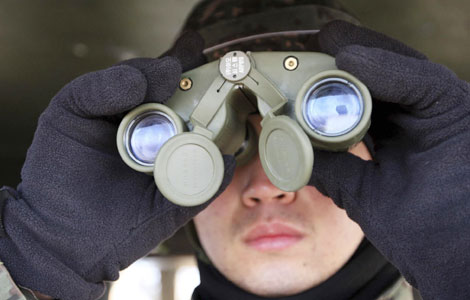 Liverpool's Luis Suarez (L) looks at Manchester United's Patrice Evra (R) during their English Premier League soccer match at Anfield in Liverpool, northern England in this October 15, 2011 file photo. Suarez has been banned for eight matches and fined 40,000 pounds ($62,800) for racially abusing Evra during the Premier League match at Anfield, the FA said on December 20, 2011. Photo taken on October 15, 2011.  [Photo/Agencies]