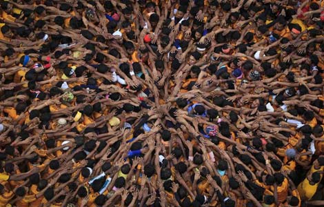 Russia's President Vladimir Putin (R) poses for a picture as he meets with members of the Russian Paralympic national team at the Kremlin in Moscow, Aug 20, 2012. [Photo/Agencies] |
