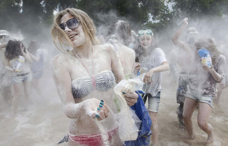 Britain's Andy Murray and ex-tennis player Tim Henman (left) laugh as they take part in a charity tennis game at the Queen's Club in west London last week. Eddie Keogh / Reuters