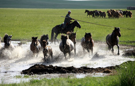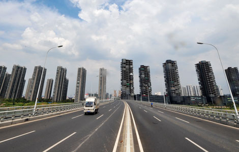 Arsenal's Serge Gnabry (C, red shirt) and Lukasz Fabianski (R) play soccer with children from Hoang Anh Gia Lai - Arsenal JMG Football Academy as teammate Laurent Koscielny (2nd L) looks on, in front of Kim Lien pagoda in Hanoi, July 16, 2013. The team is in Hanoi from July 15 to 17 as part of their Asia Tour 2013, which includes Indonesia, Vietnam and Japan. [Photo/Agencies]