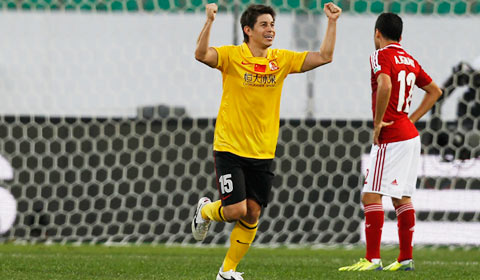 Dario Conca (L) of China's Guangzhou Evergrande scores a goal against Egypt's Al Ahly during their FIFA Club World Cup soccer match, at Agadir Stadium in Agadir December 14, 2013. [Photo/Agencies]