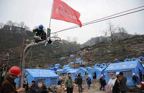 Ecuador's President Rafael Correa holds up the World Cup trophy as Vice President Jorge Glass (2nd L) and Sports Minister Jose Francisco Cevallos (L) clap, during a ceremony at Carondelet Palace in Quito Jan 27, 2014. [Photo/Agencies] |