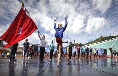 Steven Gerrard of Liverpool waves goodbye with his youngest daughter at Anfield Stadium in Liverpool, England, May 16, 2015. [Photo/IC] |