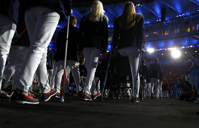 Among the highlights of the ceremony was a stunt in which wheelchair athlete Aaron Wheelz sped down a 17-meter ramp before completing a stunning reverse somersault.