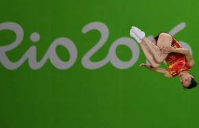 Silver medalist He Zi of China (R) receives a marriage proposal from teammate Qin Kai after the medal ceremony of the women's 3 meter springboard at the Rio Olympics on Sunday. Qin won the men's 3 meter synchronized 3m springboard on August 10.