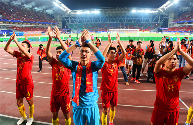 Players of China and Uzbekistan in action on Aug 31 in Wuhan, Hubei province. A late penalty kick from Gao Lin helped China keep the slim hope to enter the 2018 World Cup as Marcello Lippi's side beat Uzbekistan 1-0 at home on Thursday in the penultimate round of the Asian qualifying campaign. [Photo/VCG] |