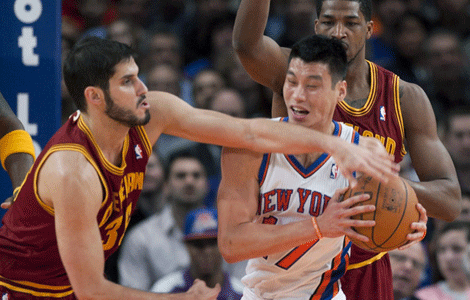 Jeremy Lin was given a helping hand by fellow point guard Baron Davis as the New York Knicks made good use of their newly discovered depth to roar past the Cleveland Cavaliers 120-103 on Wednesday.