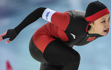 Zhang Hong of China competes in the women's 1,000 metres speed skating event during the 2014 Sochi Winter Olympics, February 13, 2014. [Photo/Agencies] |
