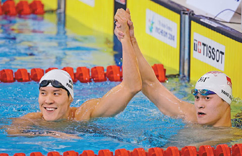 Swimming star Sun Yang and his South Korean counterpart Park Taehwan always appear as hostile rivals but in reality they share respect and admiration.
