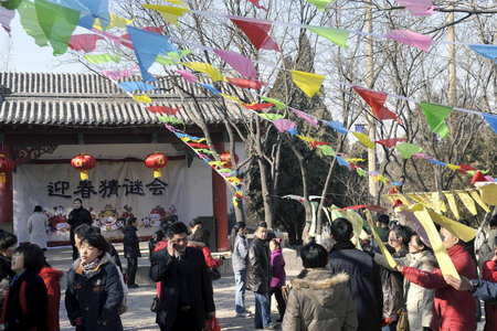 ![]() People attend a riddle guessing partyin celebration ofthe Chinese Lunar New Year in the city of Jinan, east China's Shandong province Monday January 26, 2009. Spring Festival, or the Chinese Lunar New Year, is the most important traditional Chinese festival that calls for family reunion. It falls on Jan. 26 this year.[Xinhua]