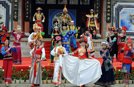 ![]() People wearing minority costumes pose for photographs in celebration of the Chinese Lunar New Year in the city of Kunming, southwest China's Yunnan province Monday January 26, 2009. Spring Festival, or the Chinese Lunar New Year, is the most important traditional Chinese festival that calls for family reunion. It falls on Jan. 26 this year.[Xinhua]