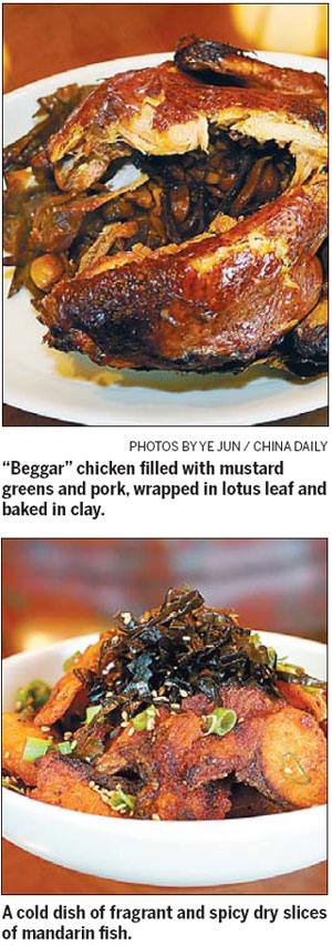 One of the best cold dishes at the table, for example, was "fragrant and spicy dry slices of mandarin fish". The great tasting fish would have been a terrific match with a cup of Chinese baijiu, clear liquor.