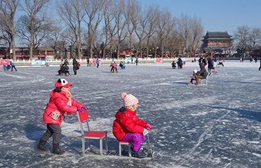 People enjoy skating at Beijing's Shichahai scenic spots