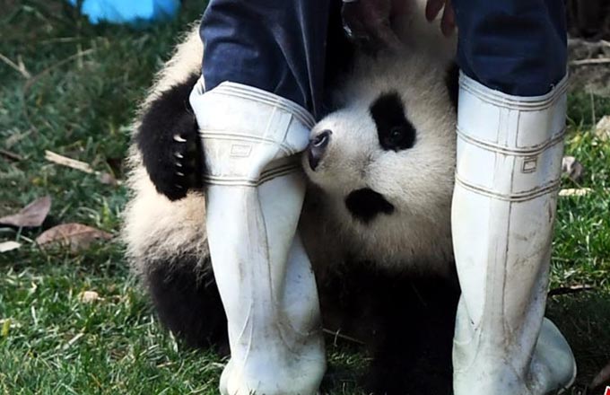 An air crew stands by a helicopter providing hailing service on May 15, 2015. [Photo/xinhuanet.com] |