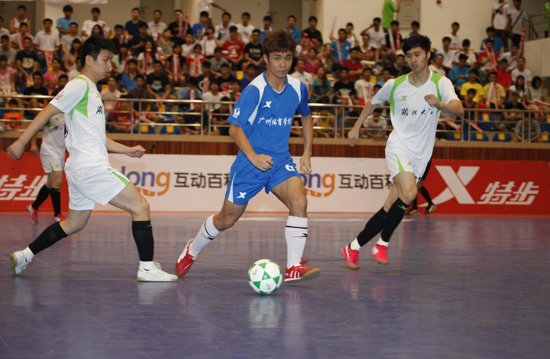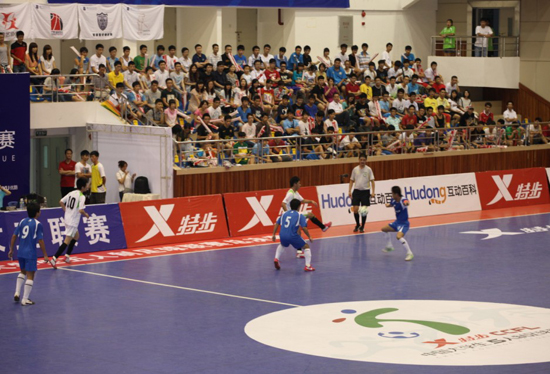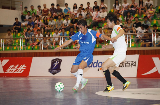 6月23日晚,2011-2012特步中國大學生五人制足球聯(lián)賽(CCFL)冠亞軍爭奪戰(zhàn)第一場比賽在廣州體育學院五人足球體育館拉開戰(zhàn)幕。經過激烈鏖戰(zhàn),客場作戰(zhàn)的湖北大學憑借晏飛的帽子戲法,胡杰、李欣的梅開二度及王瑋的進球,以8:4戰(zhàn)勝東道主廣州體育學院隊,在兩回合的比賽中占得先機。雙方的下一場比賽將于6月30日晚七點移師到湖北大學,屆時本屆特步大五聯(lián)賽的全國總冠軍亦將塵埃落定。