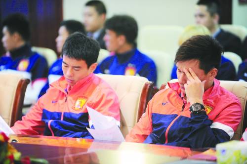恒大俱樂部全體球員參加了今天下午訓(xùn)練前的緊急會議,由于事關(guān)俱樂部聲譽(yù),球員被要求統(tǒng)一著裝并端正坐姿,他們也因?yàn)檫@次會議的緊張氣氛而變得非常嚴(yán)肅。