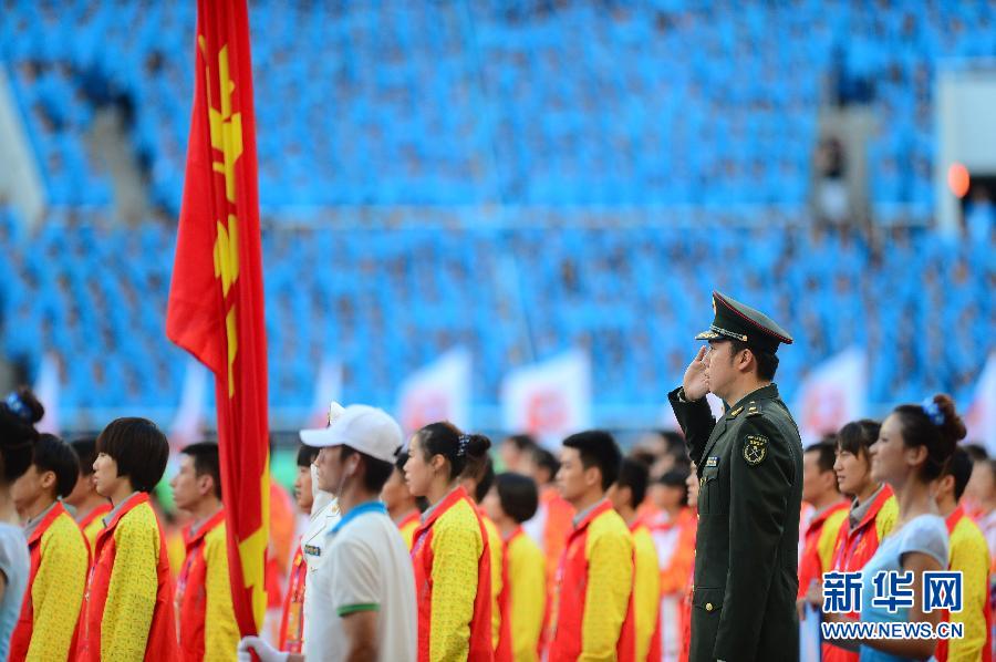 8月31日,第十二屆全國運動會在遼寧省沈陽奧體中心體育場開幕。 這是中國人民解放軍體育代表團旗手王治郅在開幕式上。新華社記者林宏攝