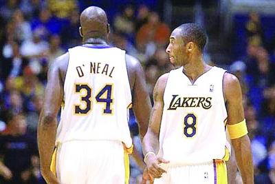 科比(右)、奧尼爾面和心不和。