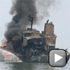 A loaded Taiwanese oil tanker set on fire and nine Chinese crew members went missing.