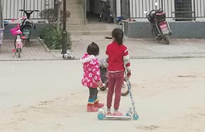 Amid the green vegetation on the outskirts of a small town in the Guangxi Zhuang autonomous region, a dirt track leads to a village in a valley, molded in karst landscape.