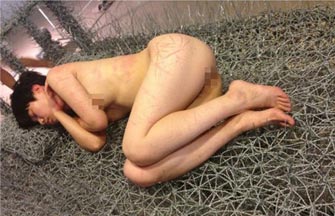 Hang Chunxiao, a well-known curator who helped plan Zhou Jie's exhibition 36 Days, spends a lot of time explaining to visitors why the artist is wearing clothes, and why she doesn't always lie on a wire bed.