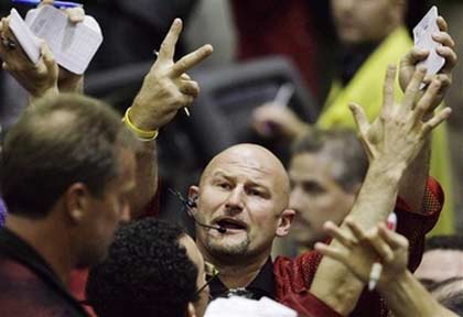 500 Futures pit at the Chicago Mercantile Exchange near the end of the