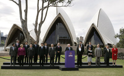 Australian Prime Minister, the host, declared at a ceremony the concluding of the two-day meeting, where the leaders had held discussions under the theme of "Strengthening our community, building a sustainable future." During their gathering, the APEC leaders issued a Sydney Declaration on Climate Change, Energy Security and Clean Development, setting specific goals on reducing energy intensity and increasing forest cover. According to the declaration, the leaders decided to improve the region's energy efficiency by at least 25 percent by 2030 from the 2005 level, increase forest cover in the region by at least 20 million hectares by 2020, and establish an Asia-Pacific Network for Energy Technology (APNet) to strengthen collaboration on energy research in the region, particularly in areas such as clean fossil energy and renewable energy sources. |
