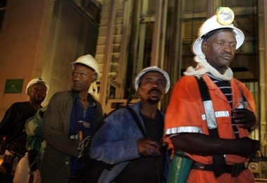 Mine owner Harmony Gold said the rescue operation was going smoothly and that a secondary lift was bringing up batches of miners stranded underground when the electricity cable of the main lift was cut in an accident. But the powerful mining union said it suspected negligence was behind the accident and vowed to push gold firms to build secondary, or emergency, exits in the mine. Chief Executive Officer Graham Briggs told Reuters he was confident all the miners would be lifted to the surface in a small elevator at the Elandsrand mine near Carletonville, southwest of Johannesburg. "There have been no injuries or deaths ... It may take as long as 10 hours, the cage (lift) is traveling fairly slowly to avoid risks ... I'm very confident all will come out," Briggs said. Briggs said production at the mine had been halted and would remain shut down until an investigation had been carried out and the damage repaired. Harmony is the world's fifth biggest gold producer. But the National Union of Mineworkers (NUM) said it suspected that negligence and Harmony's practice of mining 24 hours per day caused the accident. "We suspect negligence. Because of continuous operations there is no time to make adequate checks," NUM President Senzeni Zokwana told reporters. Zokwaba said emergency exits were needed to give workers an alternative escape route. "The manner of mining is a problem, we want to push the companies to build secondary exits, linked to the neighboring mine," he said. The first miners emerged at around 2330 GMT, after being trapped 2.2 km (1.4 miles) underground for over 15 hours. Between 150 and 200 women miners were among those trapped. "I feel happy to be on the surface. it was hot, dusty and I am quite hungry now," said 27-year-old Zandile Sindiwe, as he walked out of the elevator into a cold, windy night. By 0520 GMT, 1,350 mineworkers had been brought to the surface and mine officials said they hoped to have the remaining workers above ground by early afternoon. An NUM spokesman said earlier that the miners were trapped in a cramped space where temperatures could reach 30 to 40 degrees Celsius (86-104 Fahrenheit). The miners were caught after an air pipe broke off and hurtled down the shaft, damaging steelwork and severing an electrical cable carrying power to the main lift, Briggs said. |