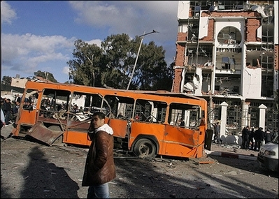 Amid a disputed death toll, rescuers pulled six people alive from the debris of one of the bombs which tore through the offices of the UN High Commissioner for Refugees and other UN agencies, Algerian television reported. The second attack killed and maimed students packed in a bus passing a car as it was detonated outside the country's highest court in central Algiers. The government said 26 people were killed and 177 injured wounded by the two bombs. Hospital sources gave a toll of 62 dead and about 100 injured. The United Nations said at least 10 of its staff were killed and an unspecified number were still unaccounted for after the attacks as rescuers, aided by sniffer dogs, tried to locate injured survivors among the debris. Stunned families gathered nearby anxiously awaiting news of missing relatives. One woman shouted and slumped toward the ground after hearing her son was among the dead, and authorities quickly led her away. Al-Qaeda's Branch in the Islamic Maghreb (BAQMI) claimed responsibility for the bombs in a statement published on an Islamist website, the authenticity of which could not be immediately confirmed. "We are announcing the good news to the Muslim nation," read the statement, alongside photographs it said were the two suicide bombers, named as Abdel Rahmane al-Assmi and Ammi Ibrahim Abou Othmane, carrying assault rifles. It hailed "the success of the two martyr operations carried out by... two heros in Algiers to defend the nation of Islam and to humiliate the crusaders and their agents, the slaves of the United States and the sons of France." "The official toll that we have given is the real toll," Algerian Prime Minister Abdelaziz Belkhadem insisted on national television. "We have nothing to hide and every drop of Algerian blood counts for us." It was the latest of a series of bombings in the capital and other major Algerian cities this year that have killed about 100 people. Al-Qaeda have claimed responsibility for all of them. |