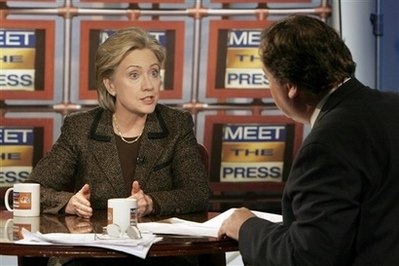 "This is an unfortunate story line the Obama campaign has pushed very successfully," the former first lady said in a spirited appearance on NBC's "Meet the Press." "I don't think this campaign is about gender, and I sure hope it's not about race." Clinton taped the show before appearances in South Carolina, whose Jan. 26 primary will be the first to include a significant representation of black voters. Blacks were 50 percent of primary voters in the state in 2004 and the number is expected to swell this time. Both New York Sen. Clinton and her husband, the former president, have engaged in damage control this week after black leaders criticized their comments shortly before the New Hampshire primary last Tuesday. The senator was quoted as saying King's dream of racial equality was realized only when President Lyndon B. Johnson signed the Civil Rights Act of 1964, while Bill Clinton said Illinois Sen. Obama was telling a "fairy tale" about his opposition to the Iraq war. Former President Clinton has since appeared on several black radio programs to say he was referring to Obama's record on the Iraq war, not on his effort to become the nation's first black president.