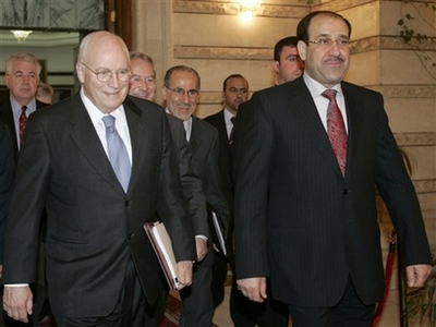 US Vice President Dick Cheney, left, meets with Iraqi Prime Minister Nouri al-Maliki, right, in Baghdad, Iraq, Monday, March 17, 2008. [Agencies]