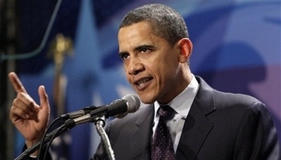 Democratic presidential hopeful, Sen. Barack Obama D-Ill., speaks at the Mansfield-Metcalf Dinner at the Civic Center in Butte, Mont., Saturday, April 5, 2008. [Agencies]