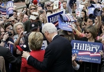 Democratic presidential hopeful Sen. Hillary Rodham Clinton, D-NY, and her husband former President Bill Clinton, center foreground, greet supporters at a rally in Pittsburgh, Pa., Monday, April 21, 2008. [Agencies]