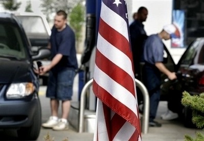 File photo shows motorists refuelling at a petrol station in Clinton Township, Michigan. [Agencies]