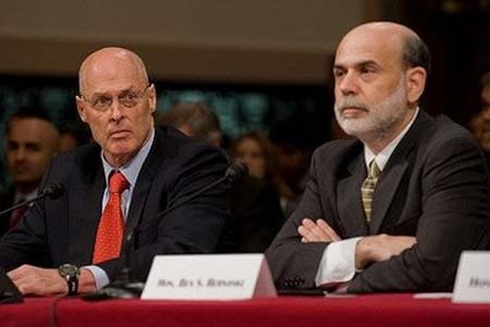 US Treasury Secretary Henry Paulson(L) and US Federal Reserve Chairman Ben Bernanke, seen here before the Senate Banking Committee on Capitol Hill, Congress, September 23, 2008, to swiftly pass a 700-billion-dollar Wall Street bailout, warning the entire US economy was at risk. [Agencies]