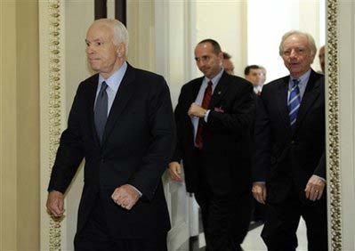 Negotiations that have centered on a $700 billion plan the Bush administration presented last Saturday seemed to fall apart. An alternative plan drafted by conservative House Republicans was discussed at the White House meeting, but McCain's level of interest was unclear. "At this moment, the plan that has been put forth by the administration does not enjoy the confidence of the American people as it will not protect ... taxpayers and will sacrifice Main Street in favor of Wall Street," the McCain campaign said in a statement. "We are still optimistic that a bipartisan solution will be found," it said. Treasury Secretary Henry Paulson sped to Capitol Hill to try to revive or rework the proposal the administration says Congress must approve quickly to stave off economic disaster. Congressional leaders were to meet with the economic chiefs into the night, and were not happy about it. "We don't want presidential politics involved in this," Reid told reporters. Even the House's Republican leader, John Boehner of Ohio, passed up a chance to praise McCain's leadership powers shortly before the two met in the Capitol at midday Thursday. Asked by reporters if McCain could help win House Republican votes for the proposed package, Boehner shrugged and said, "Who knows?" Boehner later said in a statement that McCain "has a vital role to play in this process, and he has a history of working together with both parties to make things happen." Other Republicans gave McCain more credit. "They got something done this morning only because McCain came back," said Sen. Jim DeMint, R-S.C. DeMint later called the administration's proposal "a trillion-dollar Band-Aid that does not contain a single item that will stimulate our economy." |
