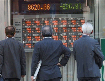 Japanese Prime Minister Taro Aso blamed the renewed drop in markets on an "insufficient" US bailout plan totaling $700 billion. "Since it was insufficient, the market is again falling sharply," Aso told lawmakers. He did not elaborate. Tokyo's Nikkei 225 stock average slid 1,089.02 points, or 11.41 percent, to 8,458.45, its biggest one-day drop since the stock market crash of October 1987. In South Korea, the main index dropped 9.25 percent after Standard & Poor's said it may downgrade the credit ratings of seven of the country's major banks. The ratings agency warned the credit crisis could make it difficult for the companies to refinance maturing debt. Every other key index was deep in the red, with Hong Kong off 6.2 percent, Australia down 6.7 percent and Singapore losing 7.3 percent. Investors were unnerved by US data showing the country's retail sales fell 1.2 percent in September, almost double the 0.7 percent decline analysts expected -- clear evidence that consumer spending, which accounts for more than two-thirds of US economic activity, was weakening. That was followed by more bearish data from the US Federal Reserve that showed the economy continued to slow in the early fall as financial and credit market problems took a turn for the worse. All told, the readings provided some of the most ominous signs to date that the world's largest economy -- a critical export market for Asia -- was sliding into recession, if not already in one. "Sentiment is deteriorating very fast. People are losing what little confidence they have on a day-by-day basis," said Jacky Choi, a Hong Kong-based fund manager at Value Partners Ltd., which manages about $5 billion in Asia. "Everyone is very worried about the economy in the U.S and around the world." In New York on Wednesday, the Dow Jones industrial average ended down 733.08, or 7.87 percent, at 8,577.91 -- its second-biggest point loss ever. The massive selling accelerated as US Federal Reserve Chairman Ben Bernanke warned in a speech Wednesday that patching up the credit markets won't provide an instantaneous jolt to the economy. Fears about the outlook for the world economy have overtaken the relief the markets breathed at the start of the week on the unveiling of a series of bank rescue packages from governments around the world. On Tuesday, the US government followed Europe's lead and announced it will pump some $250 billion into shares of its leading banks, including JP Morgan Chase & Co., Bank of America Corp., Goldman Sachs Inc. and Citigroup Inc. That money is part of the $700 billion in public funds the US government will use to buy bad mortgage-related securities and loans from troubled financial institutions. The panic selling in Asia hit many sectors. Export-linked shares such as top Japanese automaker Toyota Motor Corp., which was off 5.8 percent, retreated on worries about declining US demand. Resource firms slumped along with global commodity prices, with BHP Billiton Ltd., the world's largest mining company, losing 13 percent. In financials, KB Financial Group Inc., the holding company for top South Korean lender Kookmin Bank, lost almost 15 percent. The market tailspin helped support lending rates Thursday, showing that banks were still scared to lend money to one another -- one of the core problems of the financial crisis. The Hong Kong interbank offered rate, known as Hibor, for three-month loans ticked up slightly to 4.35 percent after easing the past couple of days. Meanwhile, insurance policies against companies failing to make good on their debt, known as credit default swaps, were more expensive -- a signal that firms believe the risk of default is growing. Oil prices continued to fall. Light, sweet crude for November delivery slid $2.43 to $72.11 in Asian trade on the New York Mercantile Exchange. Overnight, the contract fell $4.09, or 5.2 percent, to settle at $74.54 a barrel. The US dollar edged up to 100.15 yen. The euro fell to $1.3380. The South Korean won plunged 9.7 percent to 1,373 to the US dollar. South Korea's currency has fallen 31.8 percent so far this year.