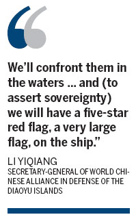 Li Yiqiang, secretary-general of World Chinese Alliance in Defense of the Diaoyu Islands, told media that the crew of the Hong Kong ship is unlikely to step on the islands given the presence of Japan's Coast Guard.
