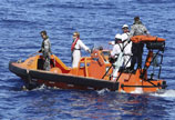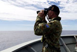 Divers embarked on Australian Defence Vessel Ocean Shield, scan the water for debris in the search zone in the southern Indian Ocean for the missing Malaysian Airlines flight MH370.