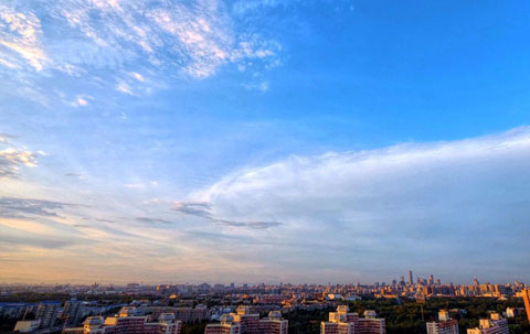 The blue sky, appearing ahead of military parade marking the 70th anniversary of the victory in the War of Resistance against Japanese Aggression on Sept 3, is also called "parade blue".