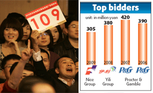Chinese entrepreneurs yesterday swarmed the China Central Television building to splurge tens of billions of yuan on the network's prime-time advertising slots for next year.