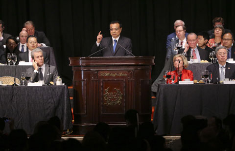 Premier Li Keqiang interacts with American friends in New York