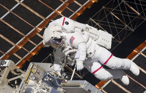 • Shuttle Endeavour's first spacewalk