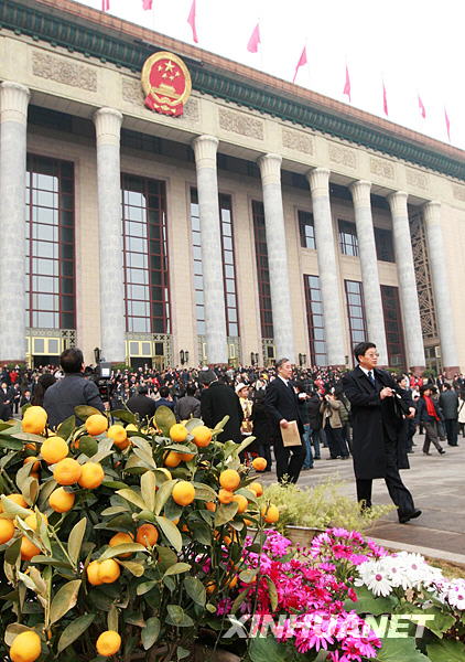 這是全國政協(xié)委員走出北京人民大會堂。新華社記者 龐興雷攝