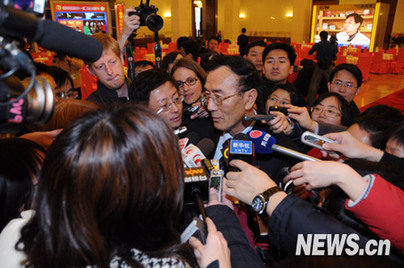 3月5日,十一屆全國人大二次會議在人民大會堂開幕。圖為全國人大代表栗戰(zhàn)書接受新華網(wǎng)記者的采訪。陳濤 攝