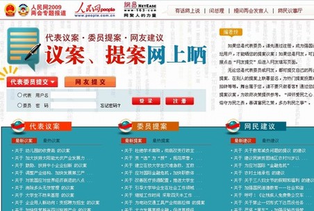 人民網(wǎng)"網(wǎng)友議事廳"和"曬議案提案"引網(wǎng)友熱烈反響 2009-03-11 14:49